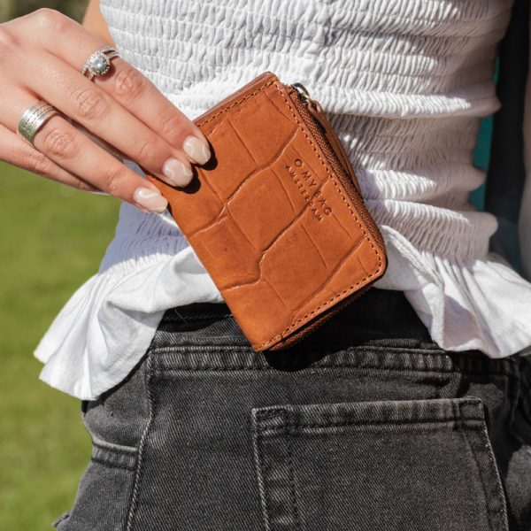 Coco coin purse heeft één hoofdvak met ritssluiting en een extra insteek van aan de buitenkant.