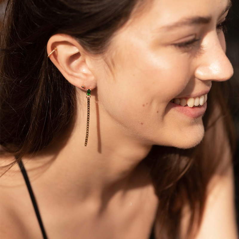 | Extra informatie | Oorstekers met rechthoeksteentje in groen en lange blockschakel. De oorstekers zijn lekker licht. goldplated op longlasting stainless steel. |
