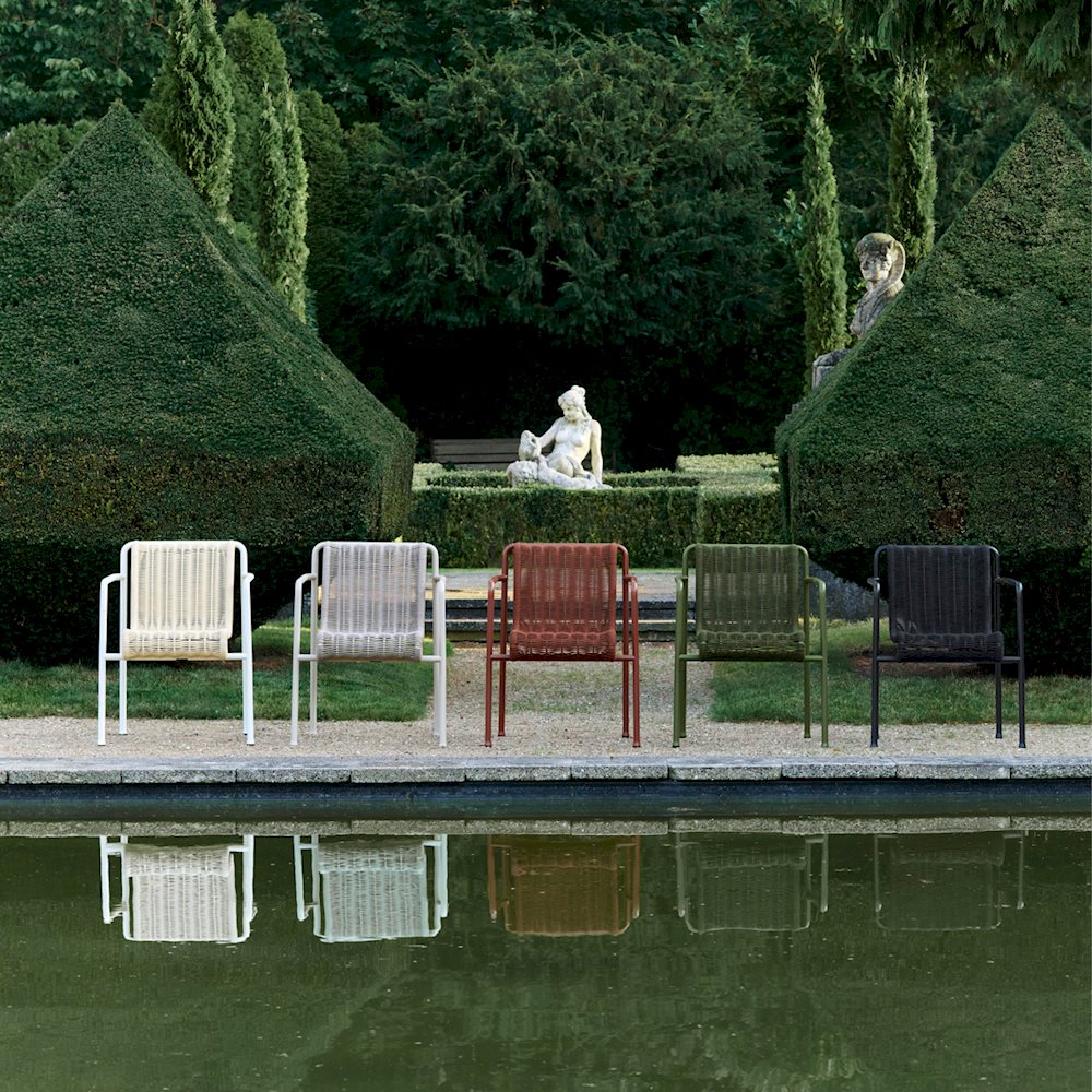 | Extra informatie | De Palissade collectie van buitenmeubilair is ontworpen om moeiteloos te integreren in zowel natuurlijke als stedelijke omgevingen. De Palissade Cord Dining fauteuil deelt dezelfde designtaal als de oorspronkelijke collectie en combineert een zachtere expressie met de visuele eenvoud en kernkracht van Palissade. Koord van gerecycled polyester is met de hand geweven op het gepoedercoate stalen frame van de stoel in een bijpassende ton-sur-ton kleur, waardoor een comfortabele en duurzame zitting ontstaat. Het veelzijdige kleurenpalet en de tijdloze uitstraling maken de stoel ideaal voor gebruik in een breed scala aan buitenruimtes, van cafés en restaurants tot tuinen, terrassen en balkons. |