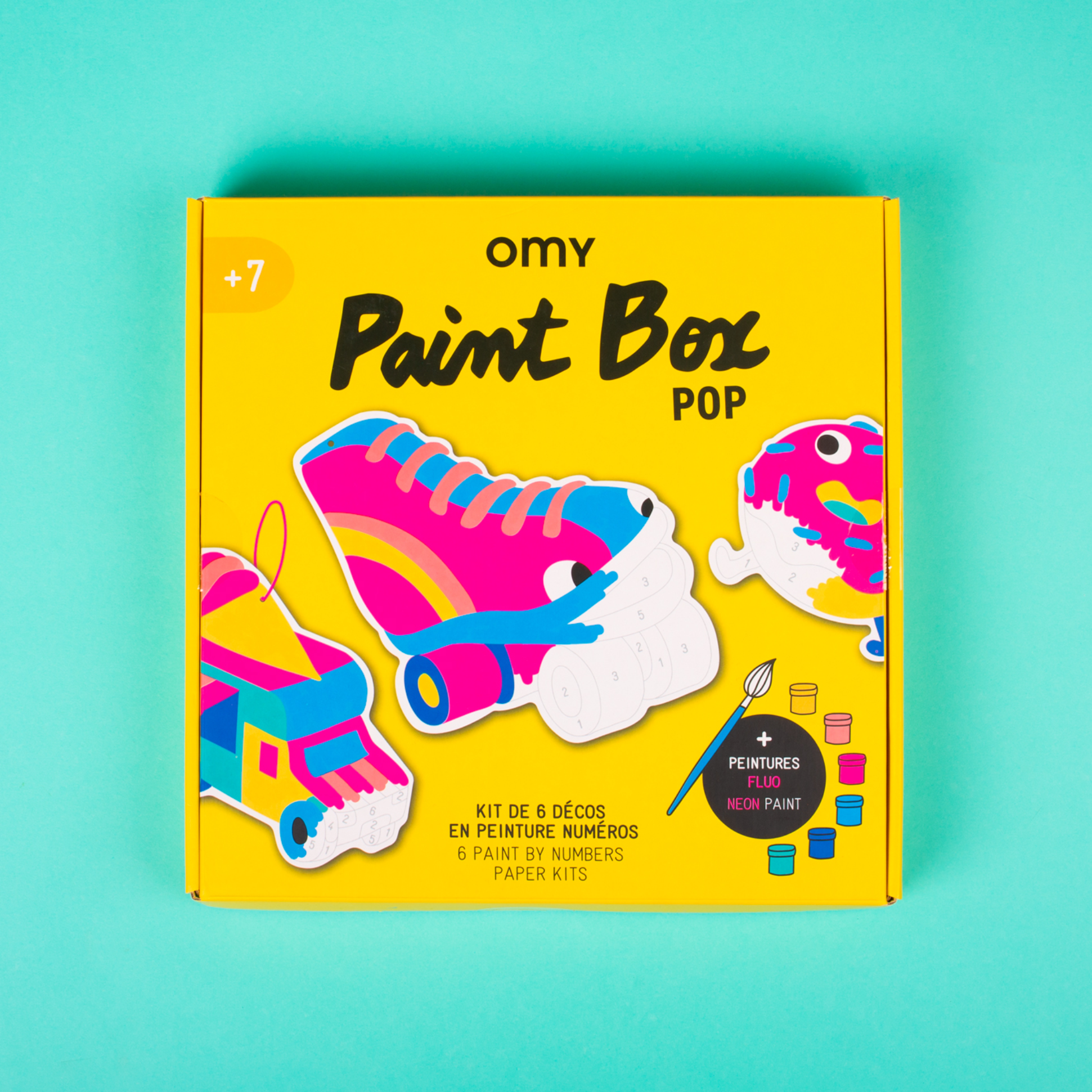 inhoud: 2 kartonnen vellen met 3 decoraties + 1 penseel + 6 potjes acrylverf + 1 snoer om te knippen