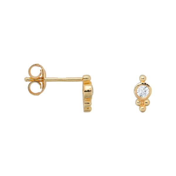 | Extra informatie | De Single Dot Stud Zirconia Silver Goldplated is handgemaakt van 925 sterling zilver met 1 micron laag 14K goud. Geïnspireerd door alles wat met glitters, strass-steentjes en fonkelende sterren te maken heeft, is deze kleine stud misschien klein, maar die witte zirkonia kan zeker schitteren. |