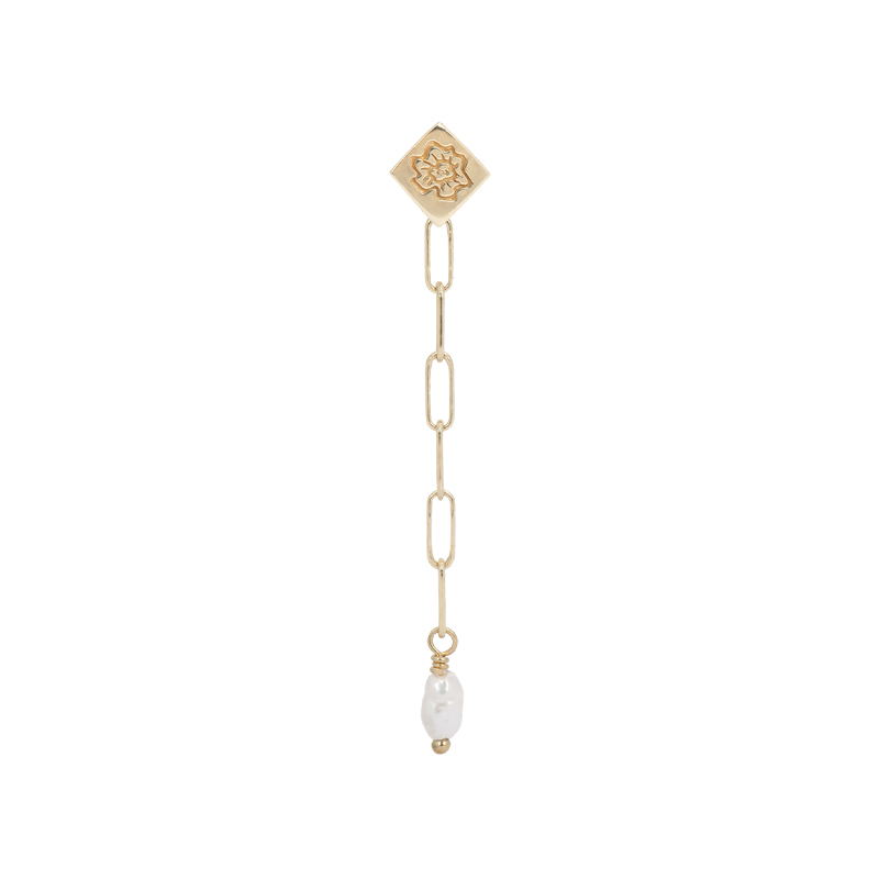 | Extra informatie | De Single Pearly Tear Earring is een sierlijke stud met gegraveerde details en een schakelketting met een kleine parel. |