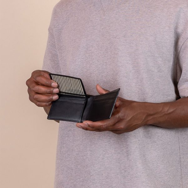 Tobi’s wallet heeft twee hoofdvakken voor contant geld, een extra vak met drukknop, drie kaartsleuven en twee extra insteekvakken.